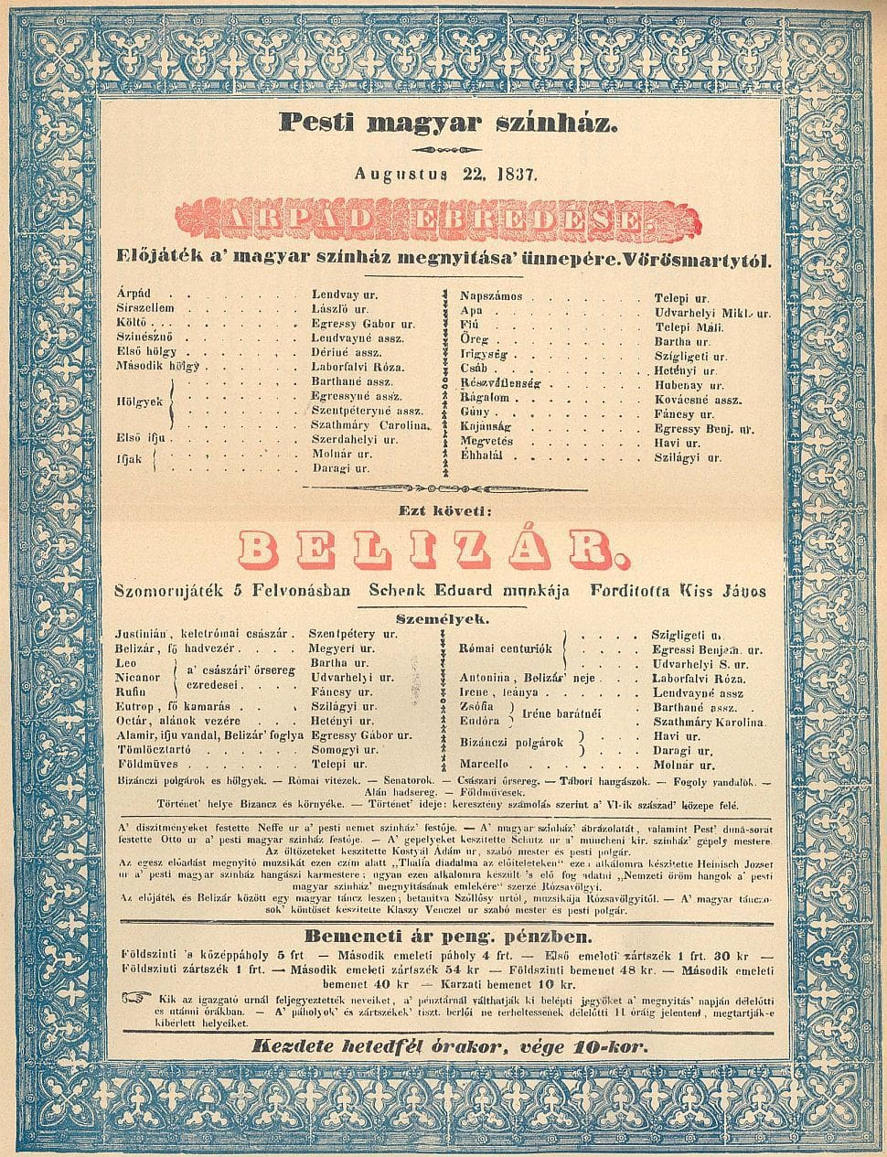 Создание постоянного венгерского театра в Будапеште было не просто культурной инициативой, но и важным этапом формирования национальной идентичности. В 1832 году граф Иштван Сеченьи, известный как «Величайший венгр», опубликовал брошюру «Об венгерском театре», где изложил свои мысли по поводу необходимости такого учреждения. Он предлагал разместить его в здании, которое впоследствии стало Венгерской академией наук. Эта идея нашла широкий отклик.