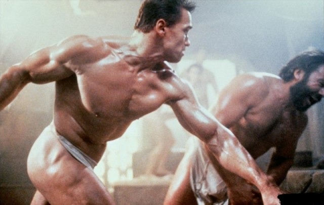 По сюжету неутомимый капитан милиции разыскивал главаря наркомафии по кличке Роста. В начале фильма Данко зашел в обширный зал сауны – место отдыха бандитов, криминальных авторитетов и их подруг. Мускулистая обнаженная фигура Шварценеггера неспешно двигалась сквозь облака пара, вдоль бассейна, мимо голых женщин и мужчин.
